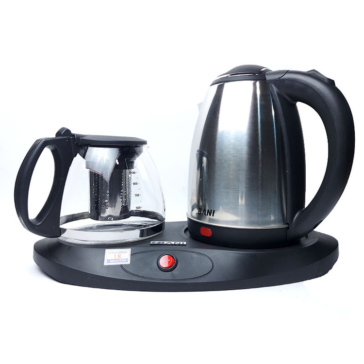چای ساز بانی Bani از برند باني پارس است با جنس قوری پیرکس و جنس بدنه استیل، ظرفیت کتری 1.5 تا 2 لیتر و ظرفیت قوری 1 تا 1.5 لیتر با توان مصرفی 1800 وات که به سرعت آب را جوش می آورد و همچنین دارای صفحه گرمکن برای دم کردن چایی و سرد نشدن آن است