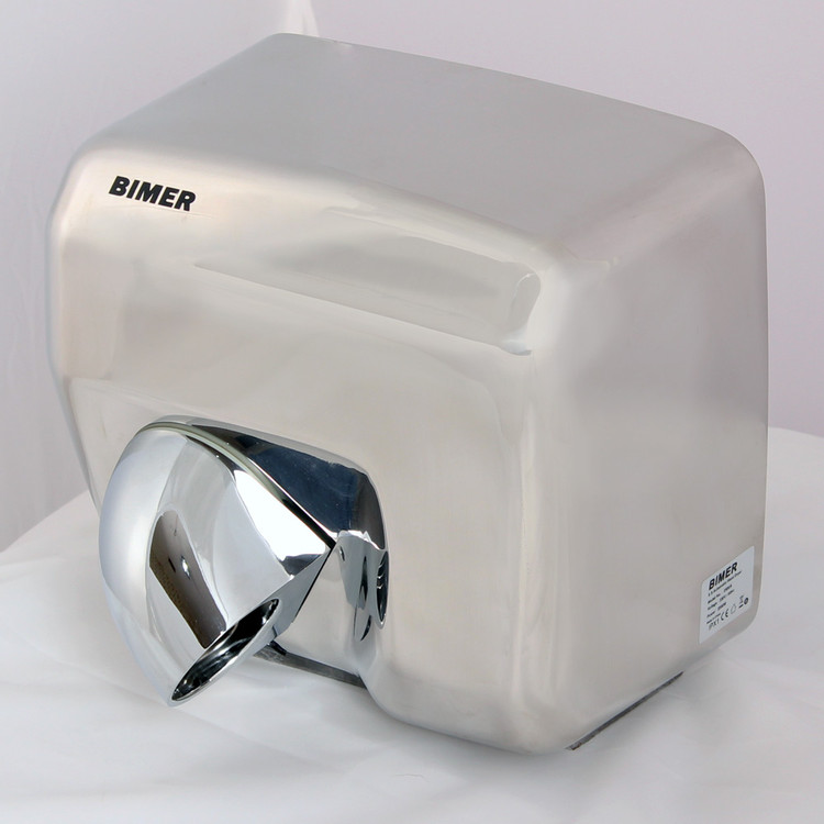 دست خشک کن 1505 با قدرت 2500-2300 وات و بدنه استیل براق جزو سریعترین و زیباترین دست خشک کن های بازار است.دست خشک کن برقی 1505 دستگاهی بسیار موفق در زمینه خشک کردن دستها است. با حداکثر قدرت موتور 2500-2300 وات دستگاهی قدرتمند و مستحکم با بدنه تمام استیل میباشد.این دستگاه به دلیل حذف حوله و دستمال برای خشک کردن دست،از نظر افزایش بهداشت فردی و همچنین کاهش هزینه ها حائز اهمیت می باشد.این مدل دارای بدنه استیل براق است که علاوه بر زیبایی ، مقاومت بالایی هم دارد .این دست خشک کن دارای خروجی چرخشی است که همزمان می تواند با چرخش خروجی صورت را نیز خشک کند و این عامل باعث کاربردی تر شدن این دستگاه شده است.دارای چشمی حساس می باشد که با نزدیک کردن دست روشن می شود و با دور کردن دست نیز به صورت اتوماتیک خاموش می شود.موتور ، برد و قطعات الکتریکی این محصول دارای بالاترین کیفیت و دارای استاندارد اروپایی CE می باشد که جهت استفاده در مکان های عمومی ، ادارات ، کارخانجات و ... مناسب گردیده است.دست خشک کن خودکار 1505 دارای چشم الکترونیک مادون قرمز در قسمت زیرین کنار خروجی هوا بوده و با قرار گرفتن دست تا فاصله 11 سانتی متری زیر دهانه خروجی به صورت خودکار روشن می گردد و با کنار کشیدن دست پس از یک ثانیه قطع میشود. در صورت روشن ماندن مداوم پس از 1 دقیقه دستگاه بطور خودکار خاموش می شود. دستگاه با طراحی دیواری و همراه با پیچ های مخصوص اتصال به دیوار ارائه شده است ، همچنین گردش 360 درجه دهانه خروج باد از مزیت های این دست خشک کن می باشد که میتوان صورت را نیز خشک کرد. دست خشک کن 1505باد گرم را با سرعت 30 متر در ثانیه پرتاب کرده و حجم دمیدن هوا در این دستگاه 270 متر مکعب در ساعت می باشد که در مدل 12 الی 15 دست ها را خشک می کند